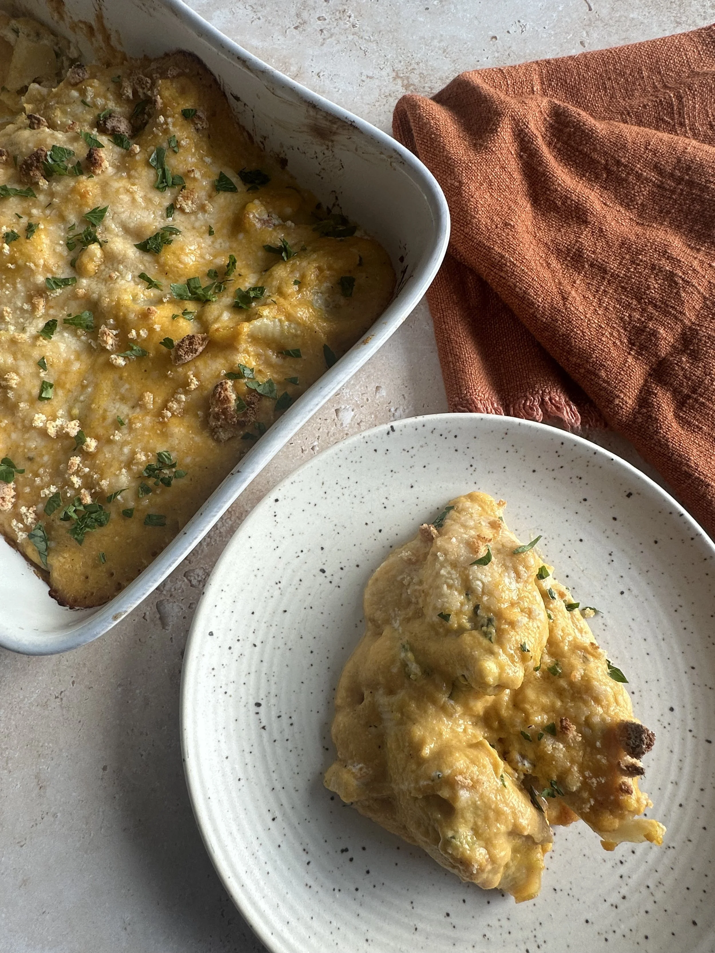 I live for a squash recipe and if I had to pick my favorite, THIS is it. I have made this recipe countless times for friends and family and it is always a crowd-pleaser and also the perfect thing to make when hosting because it's hearty, oh-so flavorful and make-ahead friendly!