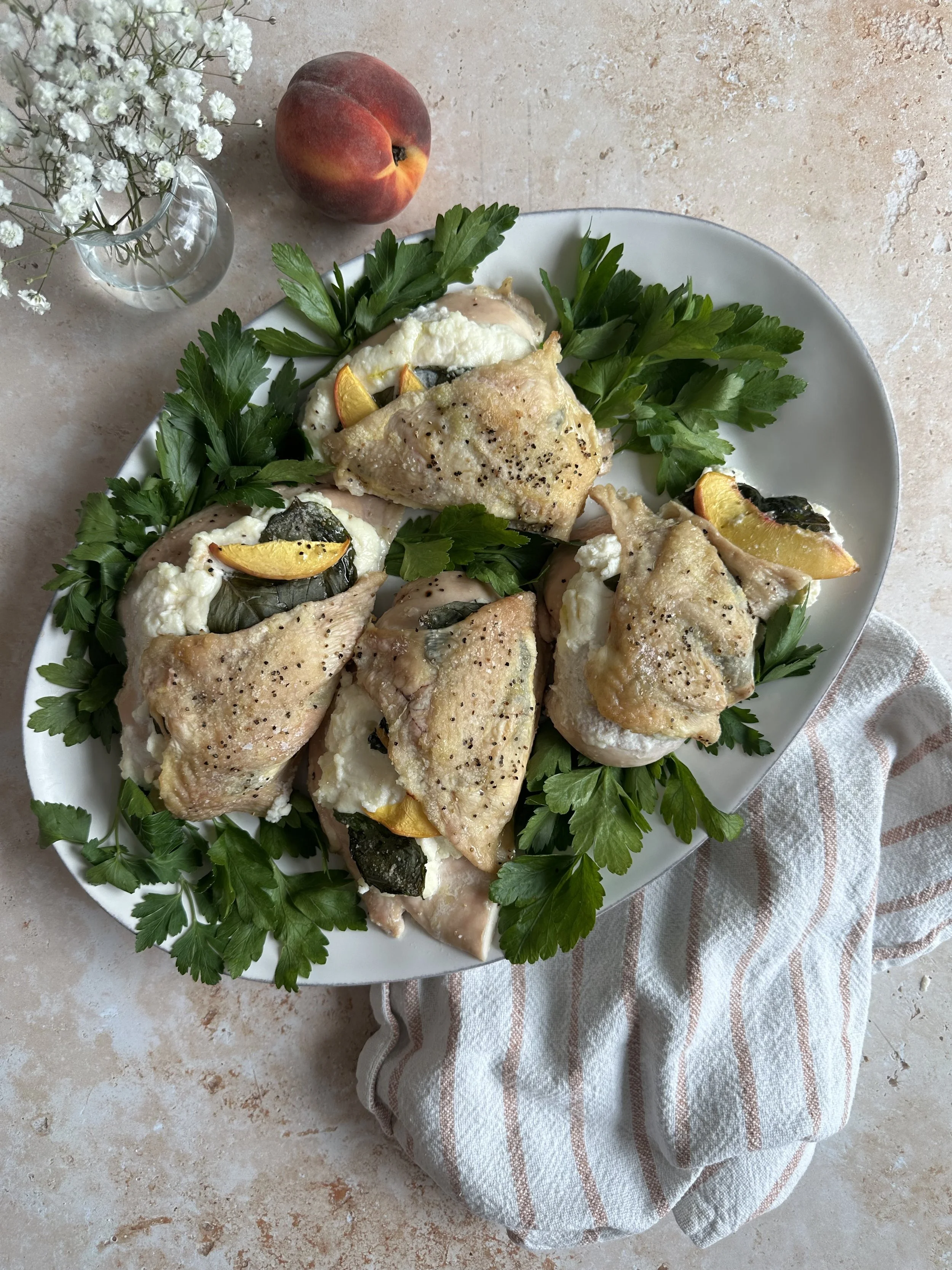 Peach Basil Ricotta Stuffed Chicken